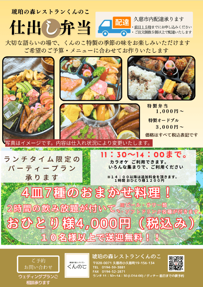 ご予算に合わせた特製弁当、オードブルのご予約も承ります。