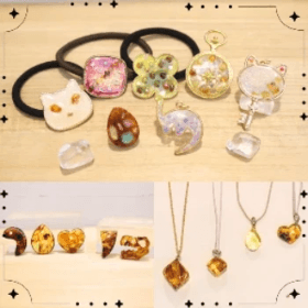 琥珀アクセサリー作りや琥珀勾玉作り。他にもレジン体験と琥珀入り万華鏡作りなど様々なメニューをご用意しています。久慈琥珀本店は博物館本館の隣にあり、世界中の琥珀を取り扱っております。品揃えは国内一を自負しております。代表的なバルト海沿岸地方産のほか、岩手県久慈地方産・ドミニカ共和国産のブルーアンバーなど、貴重な琥珀も多数 取り揃えております。