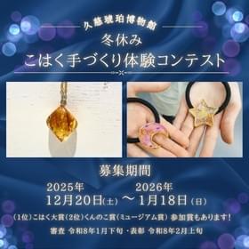 2026年12月20日 【 博物館 】2026冬休み手作り体験コンテスト開催!詳しくはこちら2025年12月15日 【 博物館 】久慈琥珀博物館2025-2026年末年始イベントのお知らせ!詳しくはこちら