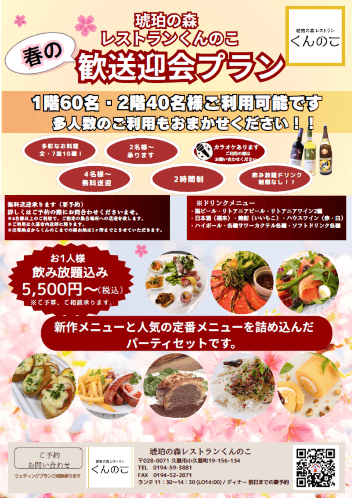 飲み放題付き・おひとり様5,500~(税込)でお楽しみいただけます。
